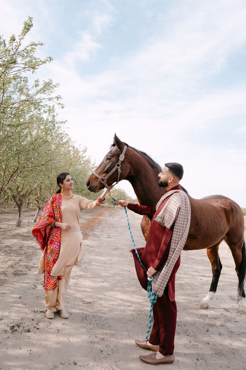 "My fiancé and I flew out to California from Surrey, BC. We found Panjabi Virsa Haveli on instagram and reached out to them for our photoshoot venue. The team was very responsive and super easy to work with. They provided all the props as well as the horse for our shoot. The team went above and beyond to make sure the shoot went smoothly. As a couple flying out of town for a shoot, the team made the process so much easier. Their service is exceptional. We highly recommend Panjabi Virsa Haveli for your pre wedding shoot venue"